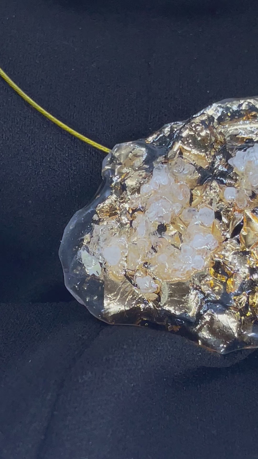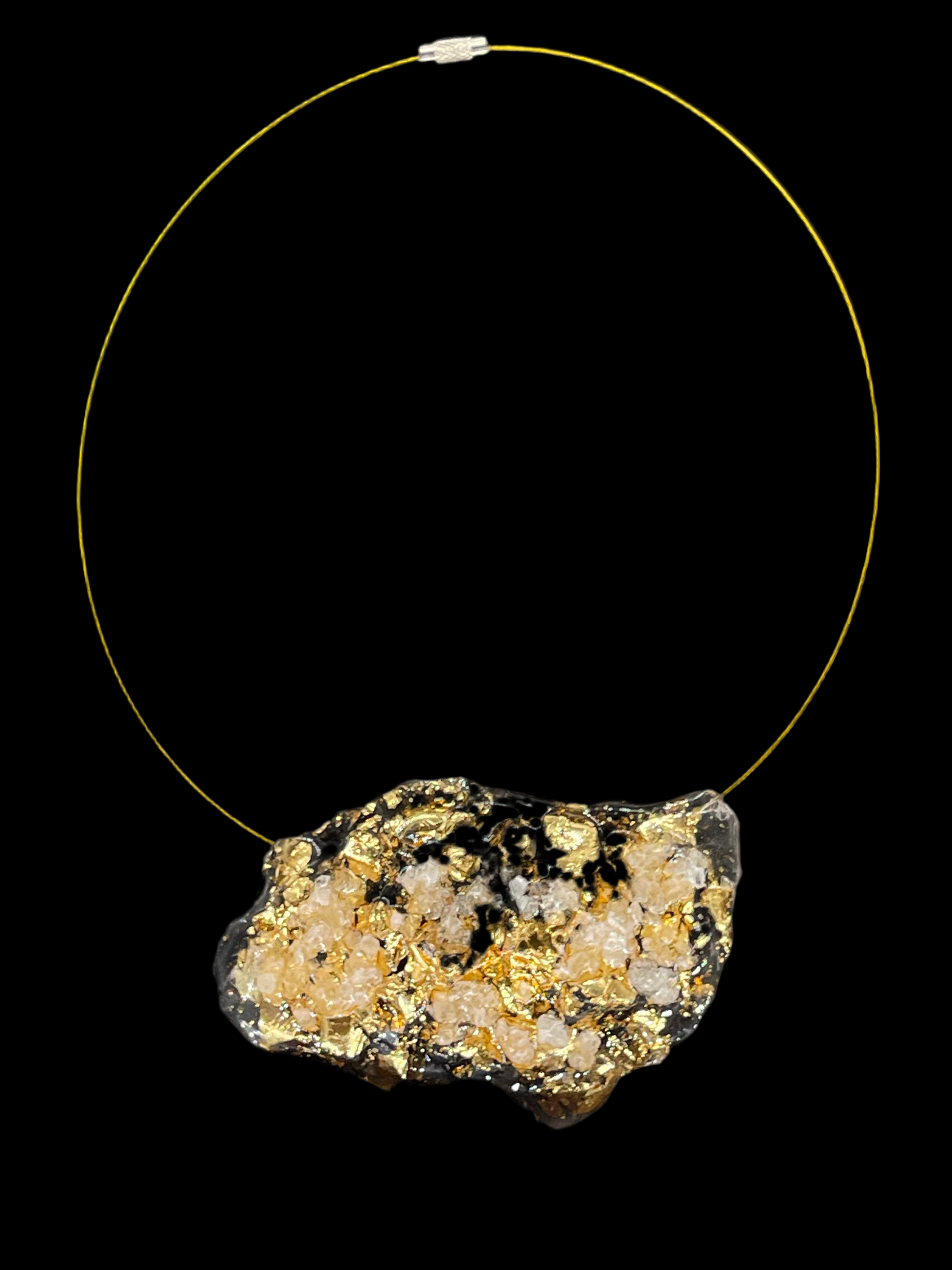 La Collana Chardonnay rappresenta lβincontro tra sperimentazione tecnica e sublime eleganza. Realizzata interamente a mano, Γ¨ impreziosita da un elemento assolutamente inedito: il vino Chardonnay cristallizzato, ottenuto mediante un processo esclusivo che trasforma la materia liquida in cristallo solido, mantenendone la purezza cromatica e la vibrazione originaria.
