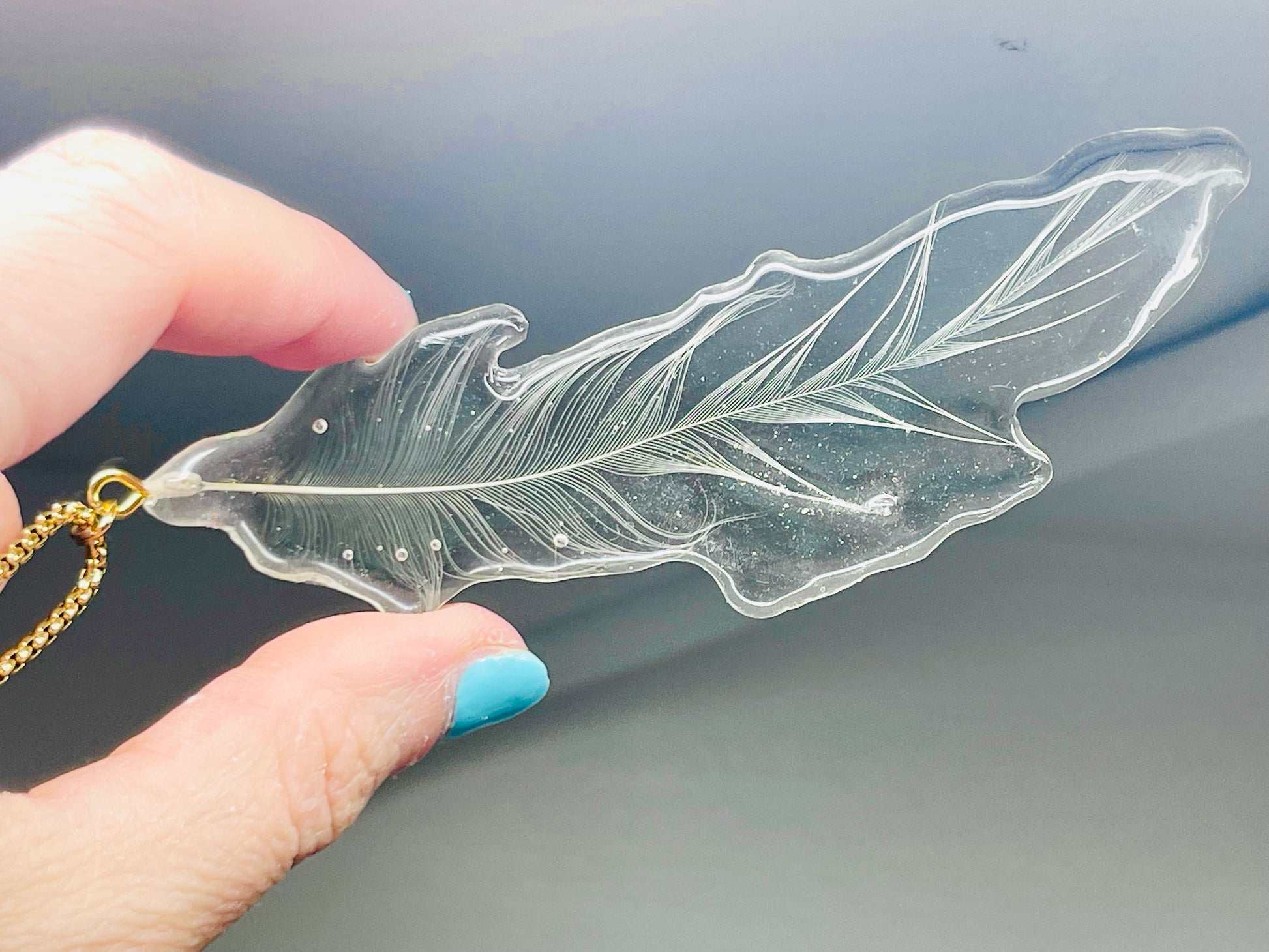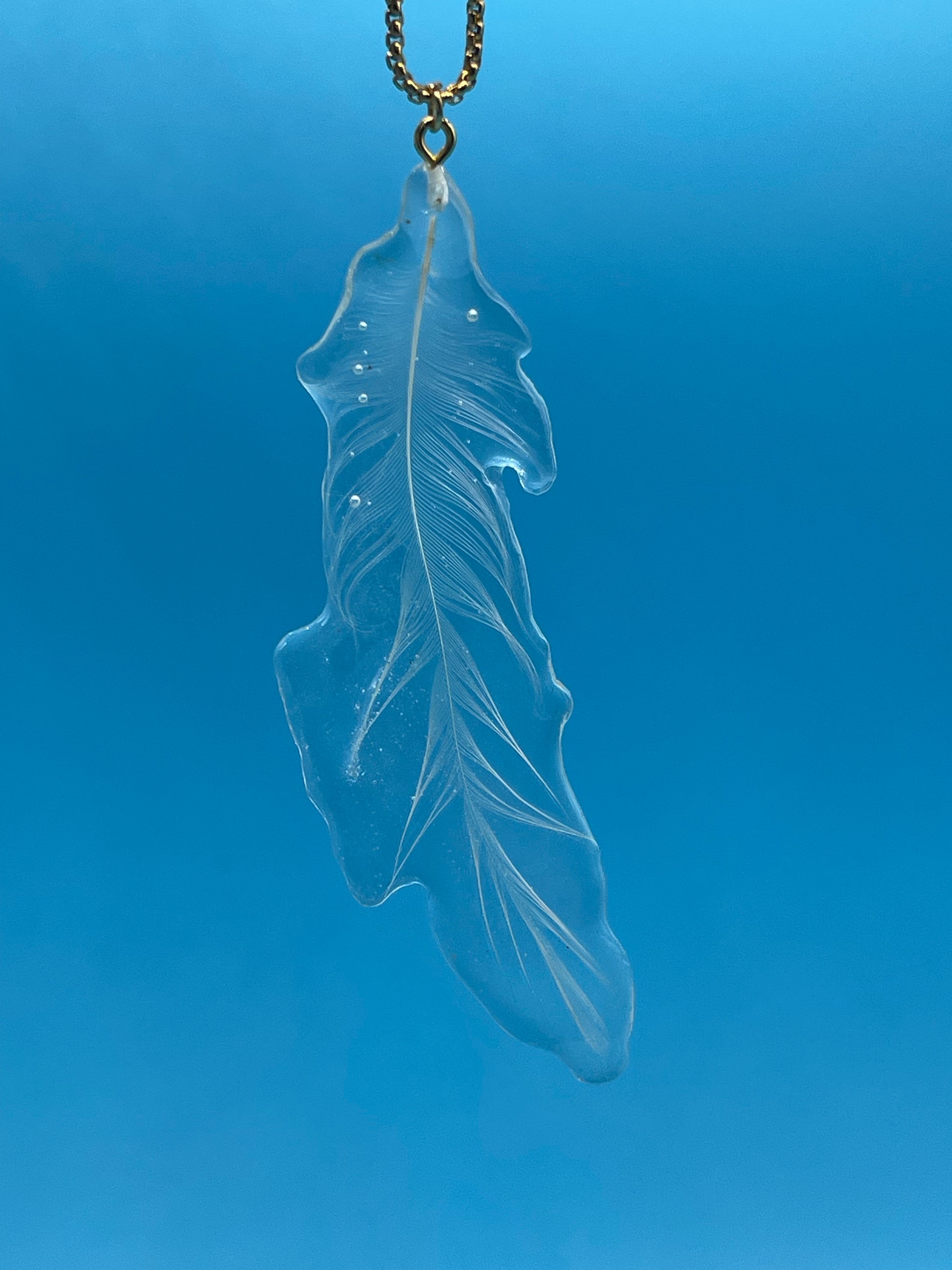 Give a moment of pure emotion with our pure white feather pendant. Handmade in resin, it offers style and modern design, a unique and exclusive piece, a perfect gift to show love