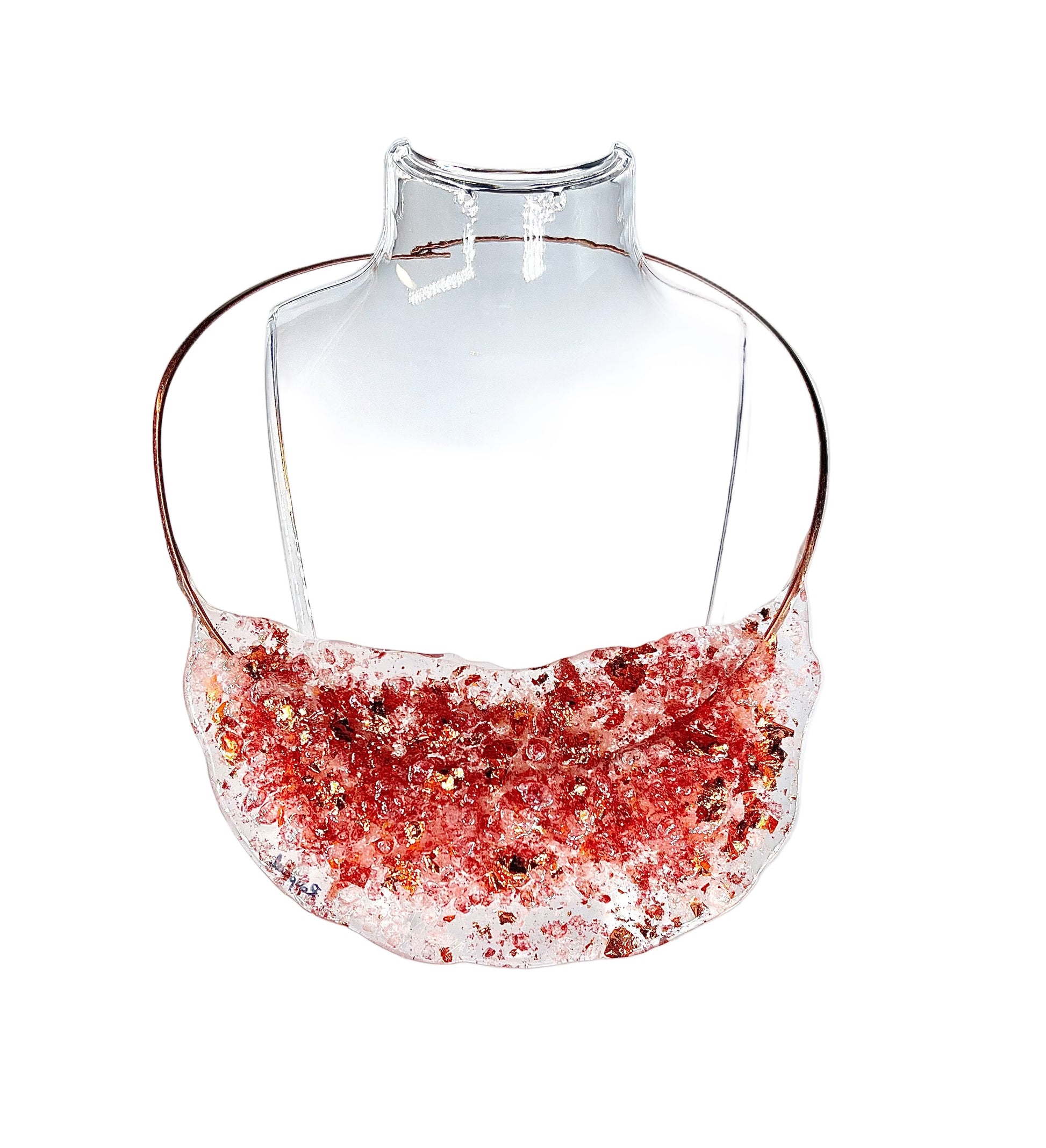 Questa collana è realizzata con cristalli autentici di Cerasuolo e Montepulciano d’Abruzzo DOC, ottenuti attraverso un esclusivo processo di cristallizzazione brevettato che trasforma il vino in materia preziosa.